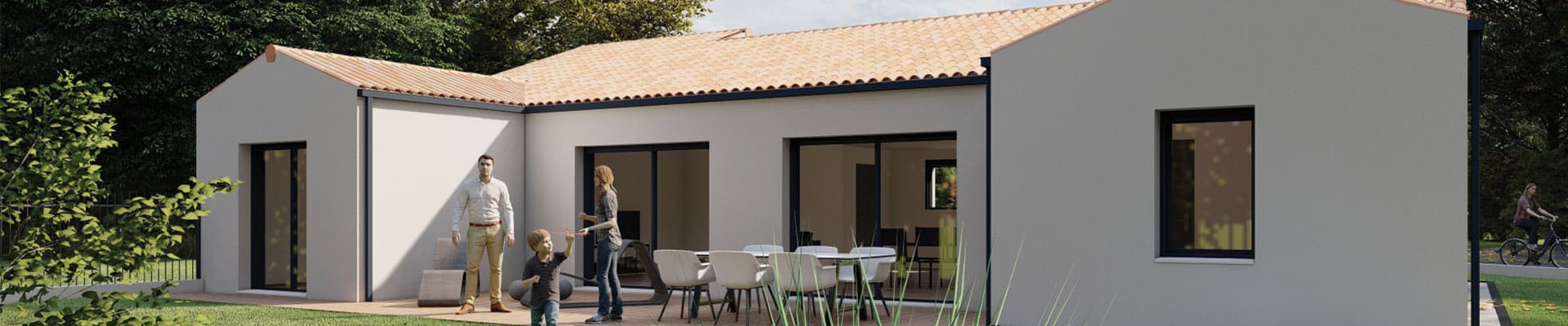 Un espace ouvert incontournable pour profiter de son jardin. Pour ce projet, la terrasse se prolonge sur toute la façade extérieure.